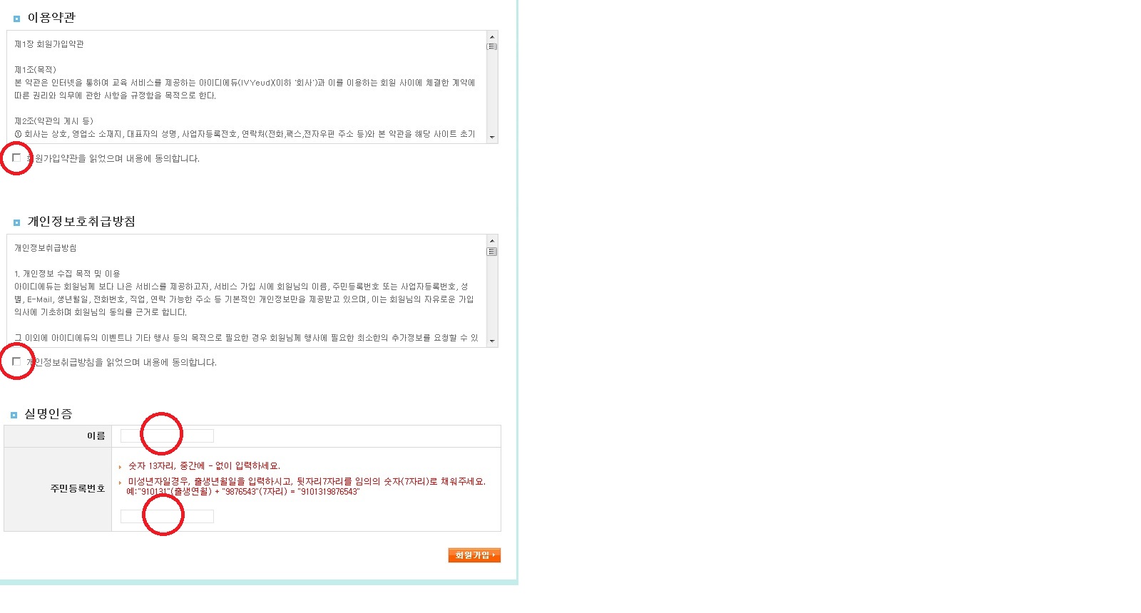 주민번호는 정확하지 않아도 가능합니다. (13자리의 숫자를 입력합니다.)