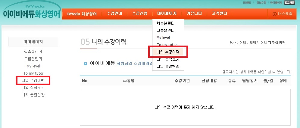 확인 방법은 " 마이페이지 - 나의 수강이력 " 에 들어 가시면 바로 확인이 가능합니다.